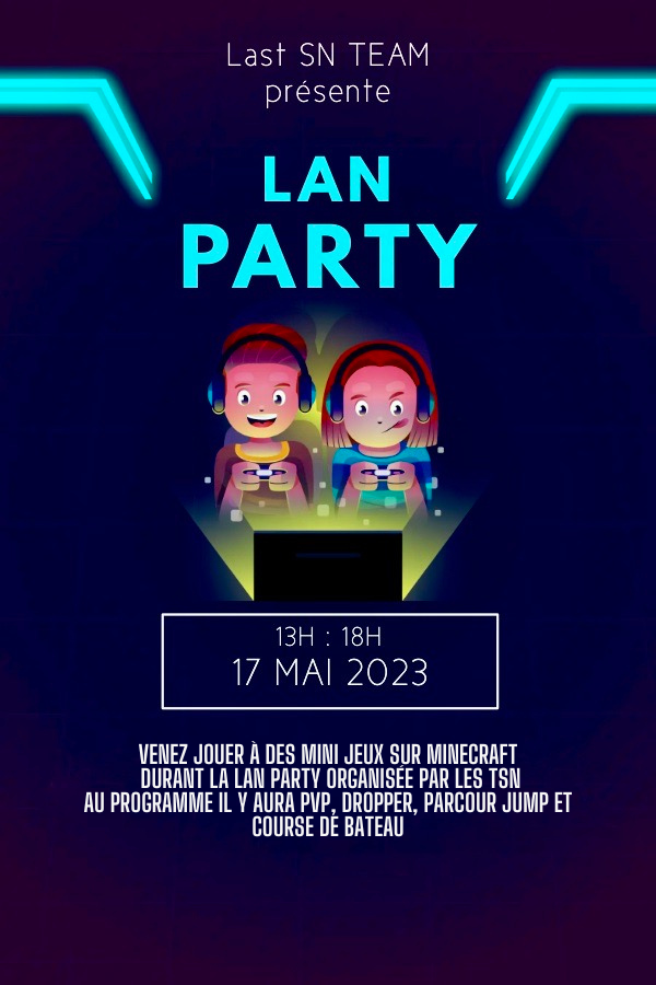 Venez jouer le 17 mai de 13h à 18h sur Minecraft durant une LAN Party organisée par les TSN. Durant cette LAN nous ferons :
